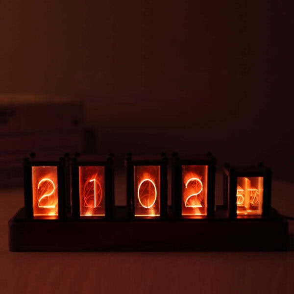 - Un design captivant : Avec ses tubes lumineux rétro, l’horloge Nixie ajoute une touche d’élégance et d’originalité à n’importe quelle pièce.