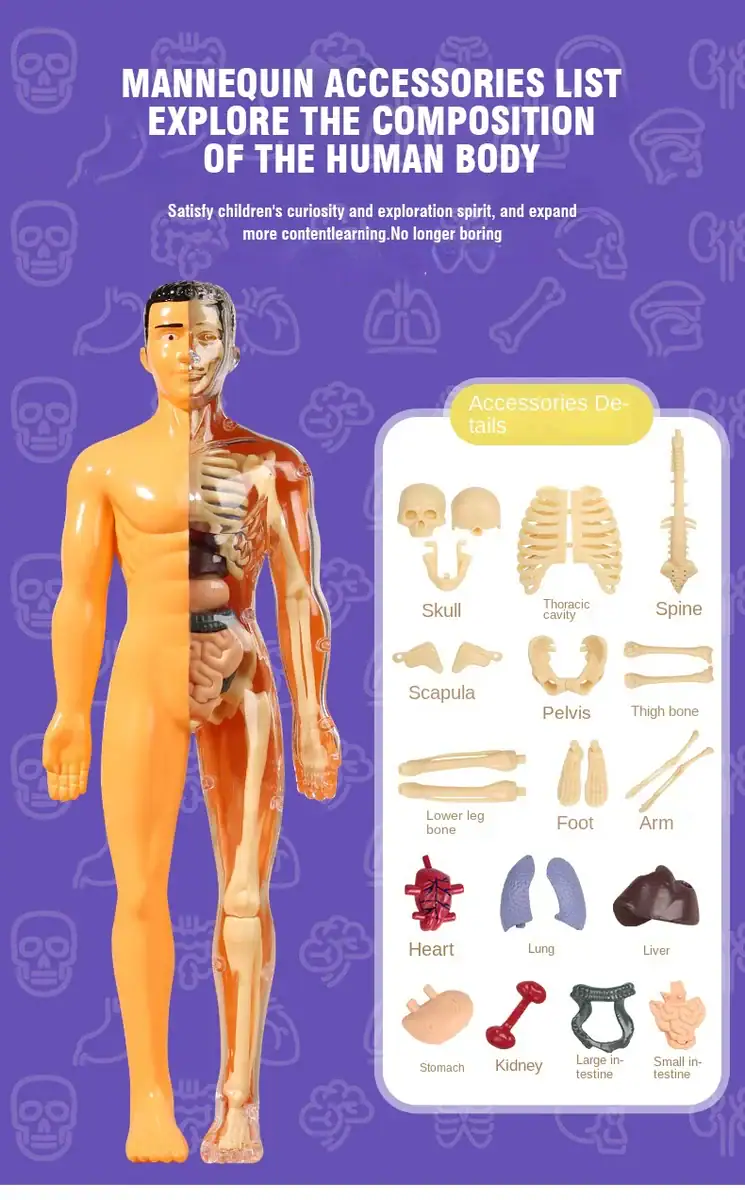 Fabriqué en ABS résistant aux chocs, il supporte les manipulations répétées sans se dégrader. Avec ses 28,5 cm de hauteur, chaque organe est suffisamment grand pour être identifié et manipulé facilement, tout en développant la motricité fine de l’enfant. Ce modèle anatomique transforme une leçon de sciences en véritable aventure tactile. Là où un livre reste plat, ce puzzle en relief permet de saisir concrètement comment les organes s’emboîtent et coexistent à l’intérieur du buste humain.