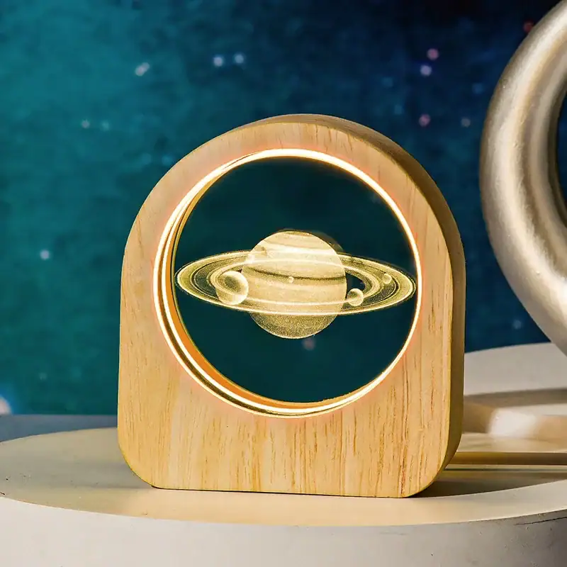 La Lampe Stellaire utilise une technologie de gravure laser 3D à l’intérieur même du verre cristallin. Contrairement aux impressions superficielles, ces motifs célestes ne s’effaceront jamais et restent visibles sous tous les angles. La base en bois émet une lumière LED douce qui remonte à travers le globe, révélant chaque planète, étoile et spirale galactique avec une précision fascinante. Cette combinaison crée une veilleuse apaisante qui ne chauffe pas, permettant un usage prolongé sans risque.