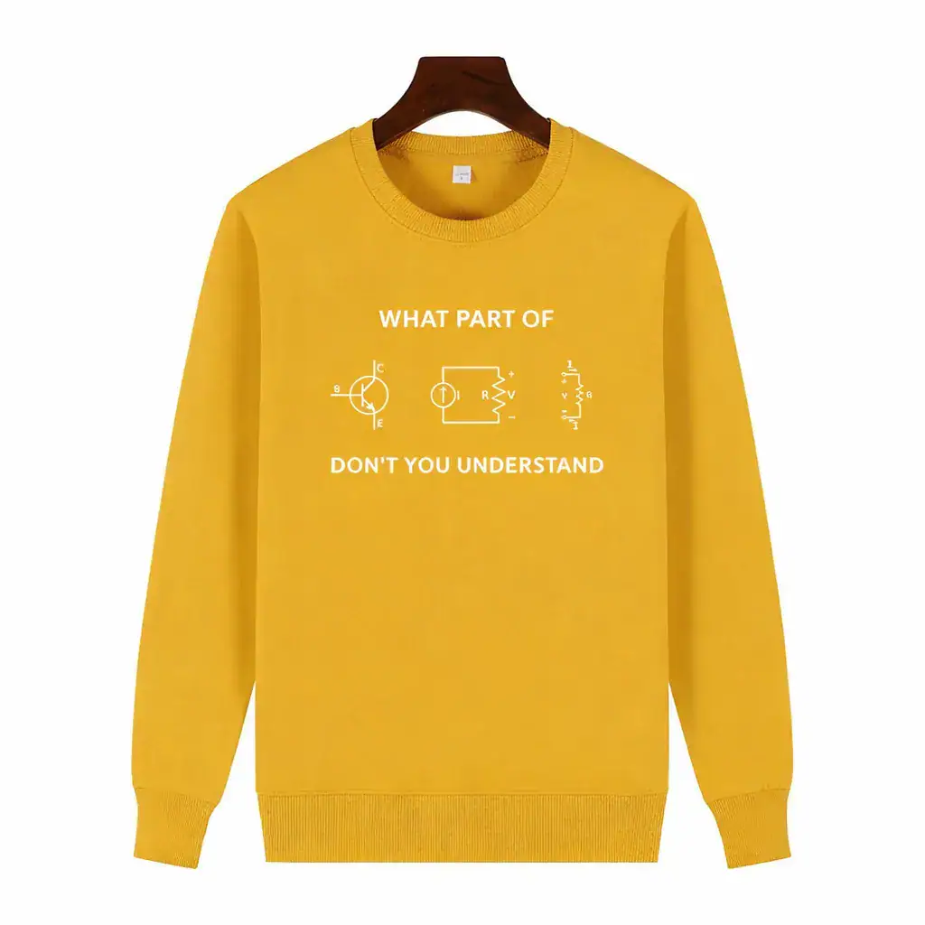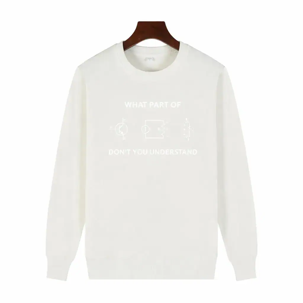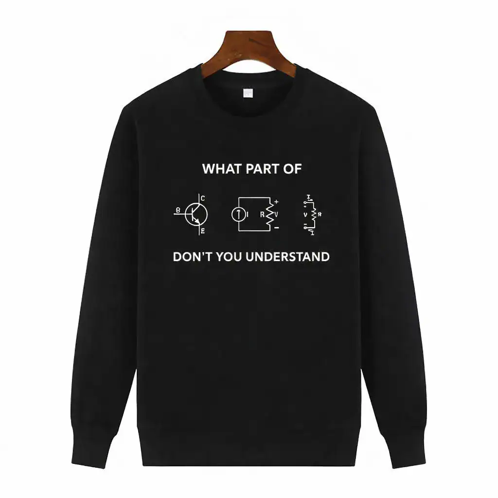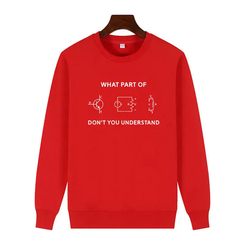 Le motif reprend un vrai schéma électronique avec résistances, condensateurs et connexions, accompagné de la question sarcastique “What part of… don’t you understand”. L’impression numérique garantit que chaque trait fin et chaque symbole reste parfaitement lisible, comme sur un plan d’ingénierie, même après de nombreux lavages en machine. Un niveau de détail rare sur les vêtements graphiques grand public.