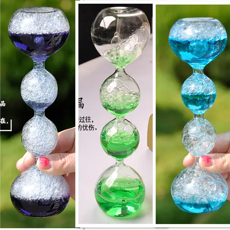 Ce sablier décoratif propose un écoulement lent et régulier des bulles, créant une animation liquide hypnotique qui aide à relâcher la pression. La forme double bulbe rappelle le sablier classique tout en offrant une esthétique moderne et colorée. Placé sur un bureau, il devient un repère visuel pour marquer une courte pause et recentrer votre attention.
