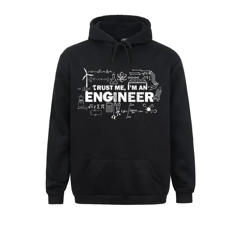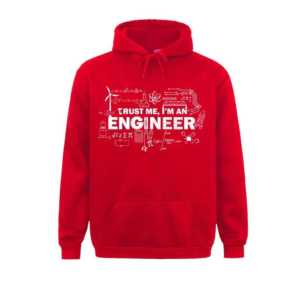 Le message central “Trust me, I’m an engineer” est entouré de véritables illustrations techniques : structures de ponts, engrenages, circuits électroniques et formules mécaniques s’organisent autour du texte comme sur une planche de travaux pratiques. Ce niveau de détail plaît autant aux ingénieurs qui reconnaissent les références qu’aux proches qui apprécient simplement la richesse visuelle du motif.
